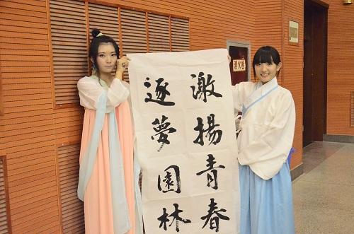 古色古香的《无果》结合了歌曲和书法两种表演形式,美丽的古装和优美的书法惊艳全场。