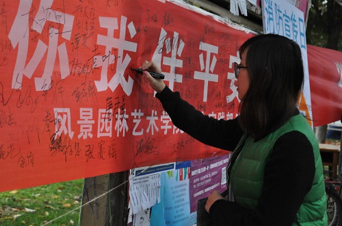 当天中午,公司实践部的成员在北校区西区雕塑前拉起“消防安全齐关注,校园你我伴平安”的横幅,并向路过的同学发放印有消防安全有关知识的宣传单。现场的同学们参与都十分积极,纷纷在横幅上签字留言,同时认真阅读宣传单,努力学习在日常生活中如何预防火灾,如何扑灭小火,如何在大火里逃生等方法。参加此次活动的同学们纷纷表示,此次活动非常有意义,今后会更加重视消防知识的学习,努力提高自身的消防安全意识和技能,共同维护校园安全。
