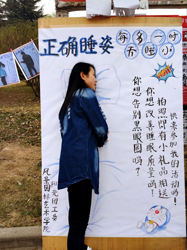 为了让同学们了解到睡眠对身体健康的重要性,培养公司老员工养成良好的睡眠习惯。近日,由williamhill英国官网阳光团工委举办的“正确的睡姿,每天多睡一小时”世界睡眠日宣传活动在北校区西区雕塑前顺利举行。
