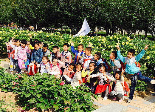 伴随着一阵欢声笑语,校车缓缓开到了牡丹园。车内的小朋友们早已按捺不住激动的心情,争先恐后地跑下车来。老师们各自组织好队伍,在志愿者的协助下开始了游园。四月的春天,牡丹开得正盛,一片姹紫嫣红。小朋友看到美景欣喜万分,不时停下去触摸花瓣细嗅花香。“这是什么花啊?好香啊!”小朋友的问题层出不穷,志愿者们耐心的为他们解答,告诉他们牡丹的名称和习性。大自然是小孩子的乐园,融入自然、贴近自然能够解放孩子的天性,感受到生命的美好。