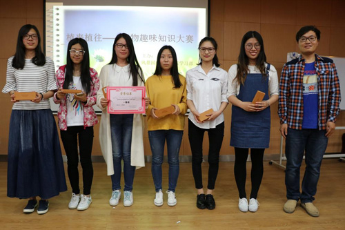 本次大赛一共分为三个环节,第一个环节"你画我猜",参赛人员每组出三个人参加第一轮的比赛,其中一个人根据给出的植物名称画出植物,其余两个人根据队友的画,猜出植物名称,考验同学对于植物了解及队友之间的默契程度;第二环节"植有你知道",小组人员全部参加第二轮的比赛,从给出的若干组题中选出一组作答,问题覆盖面广,展现了参赛队员对于植物学科的专业修养;第三环节是植物大拼盘,队员们全部参加了第三轮比赛,在两分钟之内拼出植物拼图,并说出了植物名称、植物所属科、属。按照小组拼图所用时间长短分别得分,体现了参赛队员的综合能力。经过激烈的角逐最终,李聪佳团队获得一等奖,马吉萍团队、郭志杰团队及范恬恬团队、杜晓薇团队、蔡明明团队分获二等奖、三等奖。