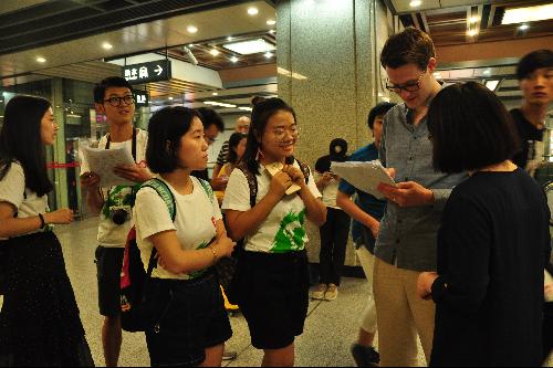 (02图 调研团队在西安地铁二号线永宁门站采访外国友人)