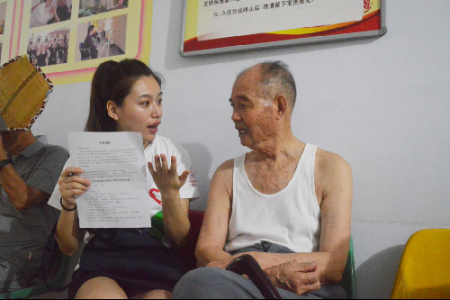 在做好充分的准备工作后,我们终于和老年公寓的爷爷奶奶见面了,在经理的带领下,我们对此次活动进行了介绍和说明,并对爷爷奶奶发放了调查问卷。