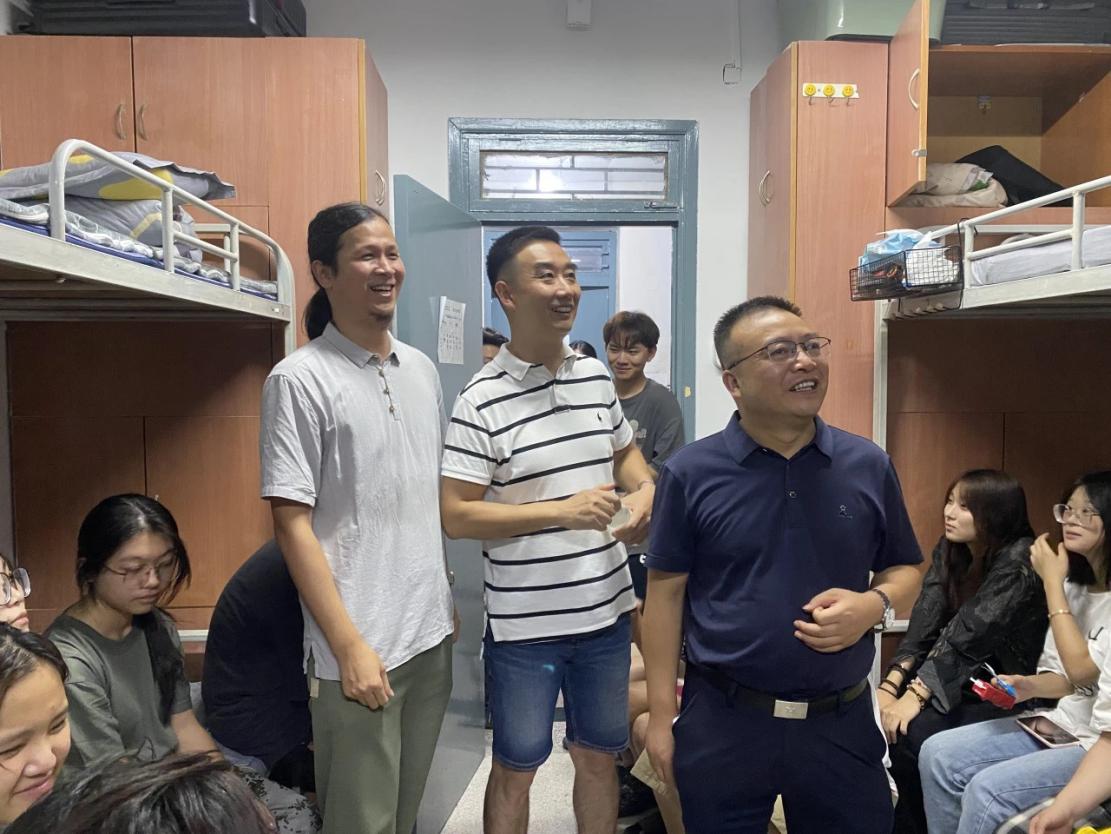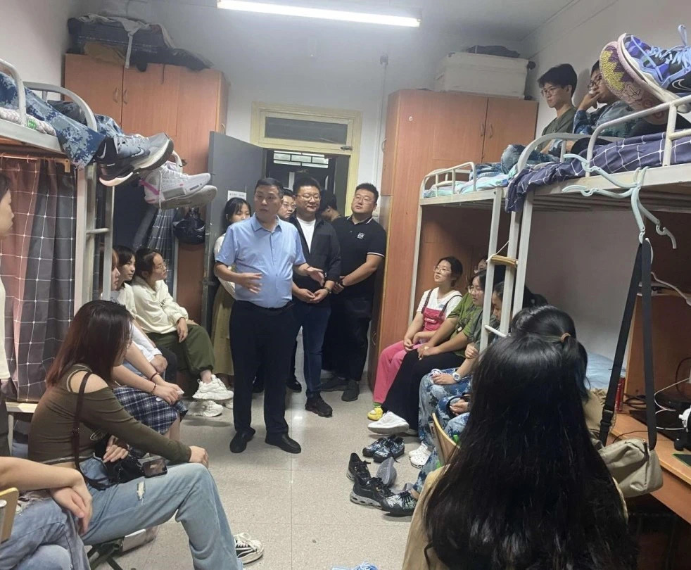 在骄阳似火的军训期间,为深入了解员工军训期间的生活与身心状况,园林公司党委书记侯华伟老师、经理高天教授、公司党委副书记王文良老师,以及公司全体学工干部于9月6日深入员工寝室,开展了一场温馨的走访慰问活动,为正在经历军训考验的同学们送去了关怀与问候。