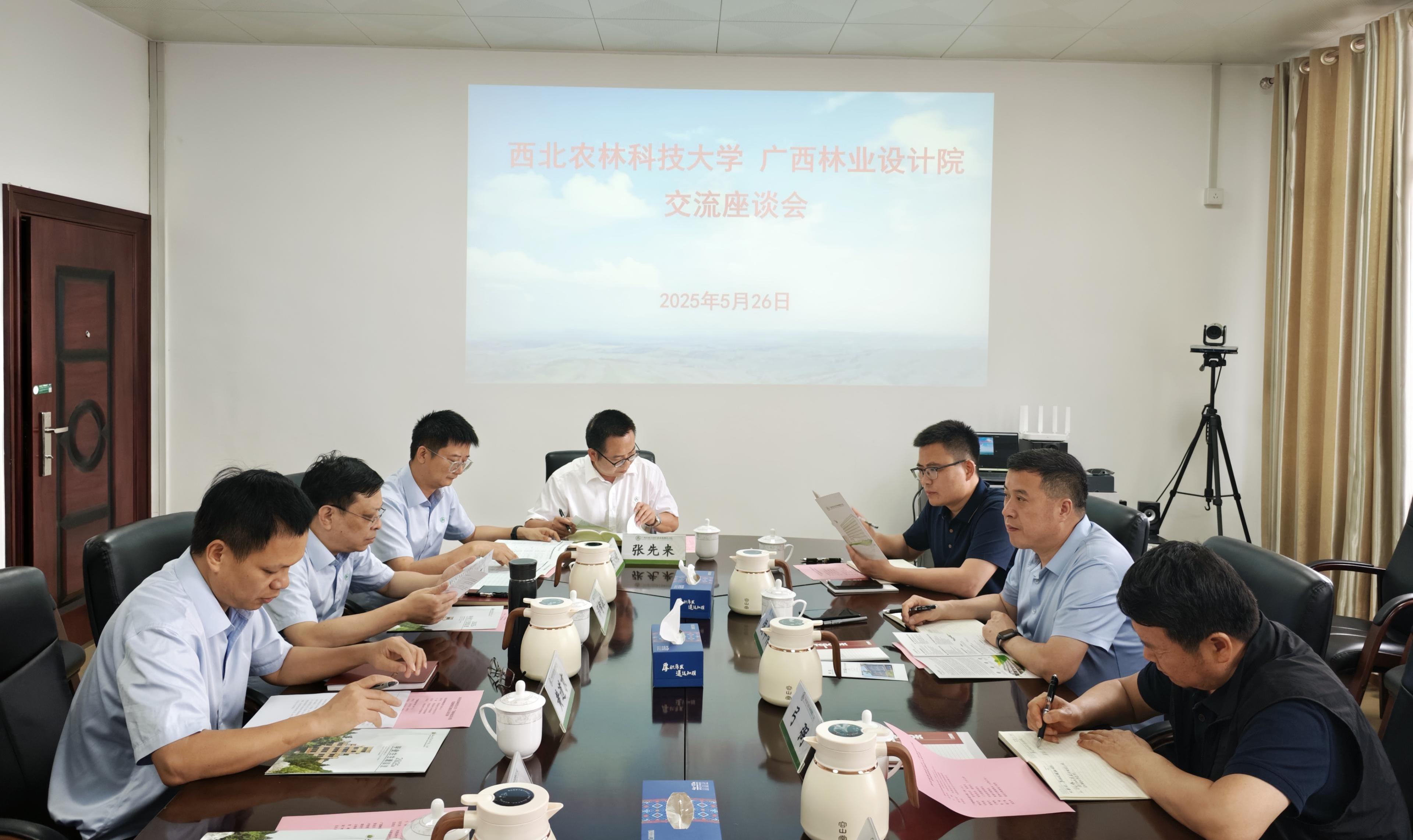 广西壮族自治区林业勘测设计院副经理黄道京、邓智联分别介绍了设计院的发展历程、组织架构、经营范围和核心业务,围绕员工就业实习、人才培养和项目合作等方面进行了交流研讨。